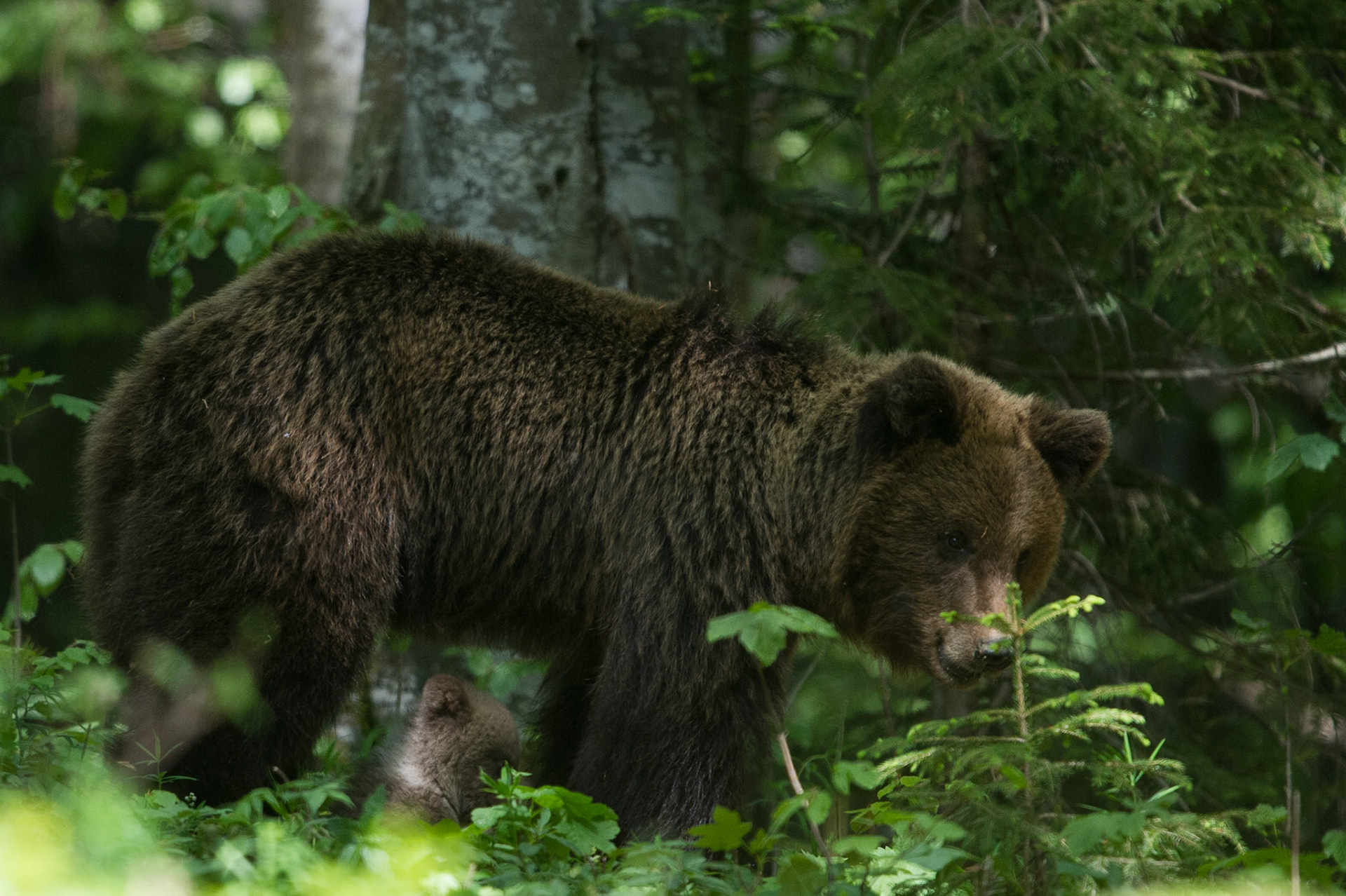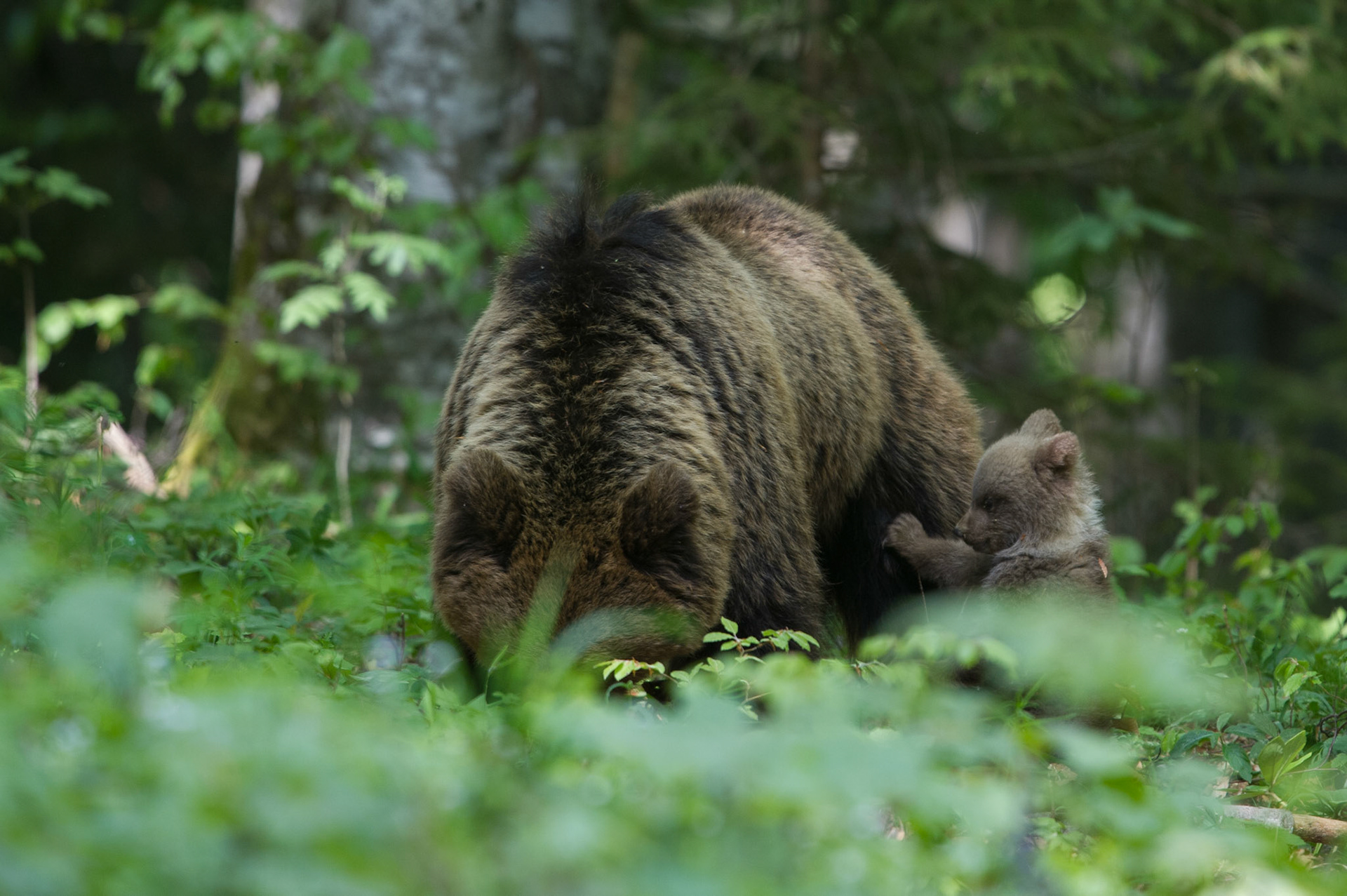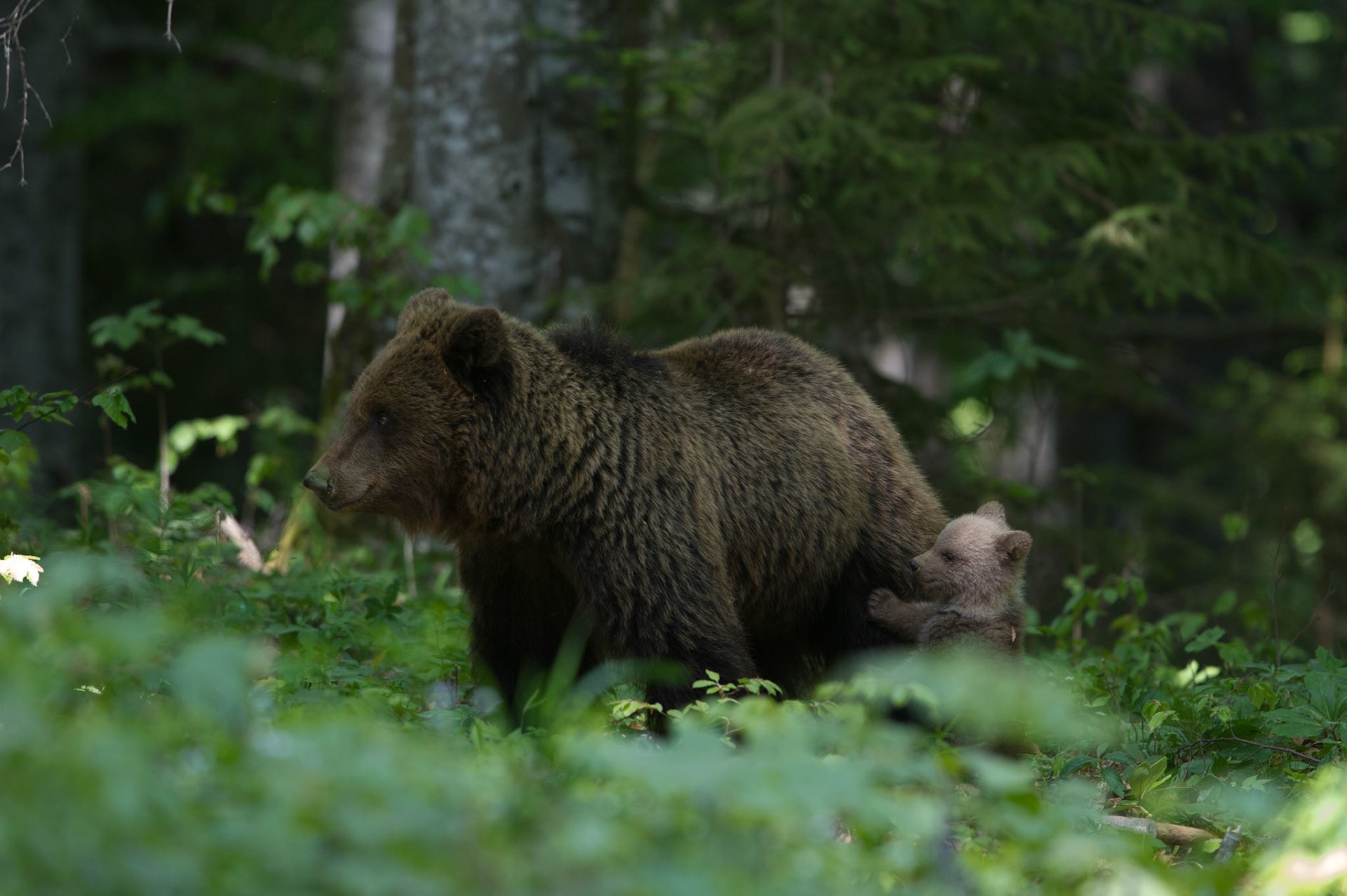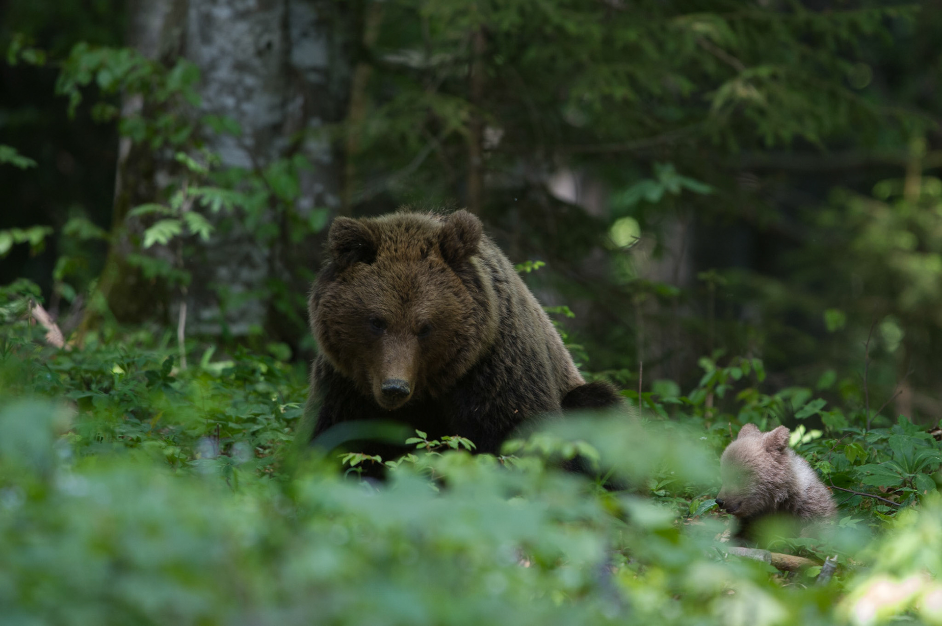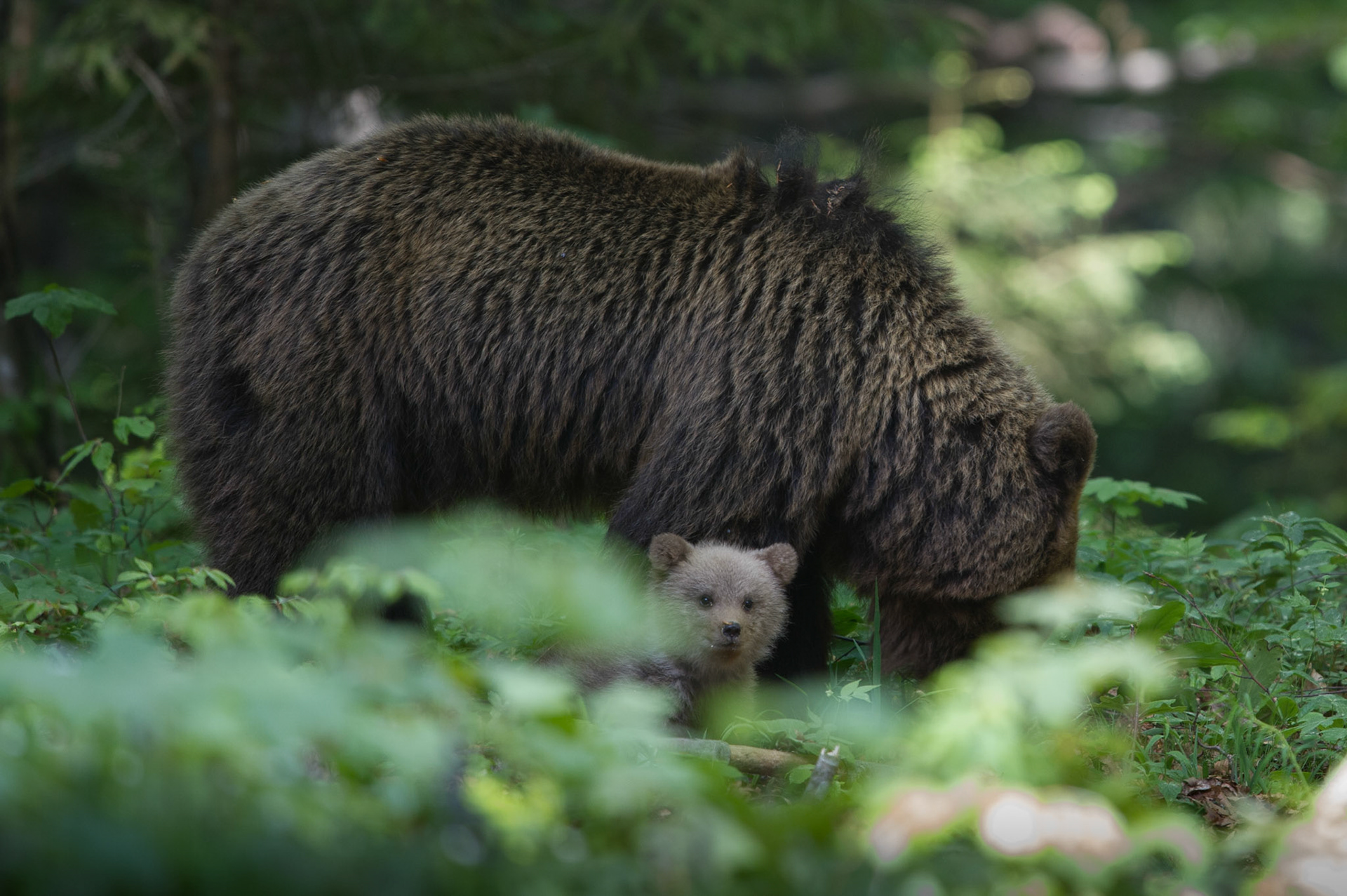 In the central south of Slovenia, not far from beautiful Postojna, there is the biggest chance to spot wild brown bears in their natural habitat. I had the great fortune to photograph a newborn little brown bear under the protection of its mother.