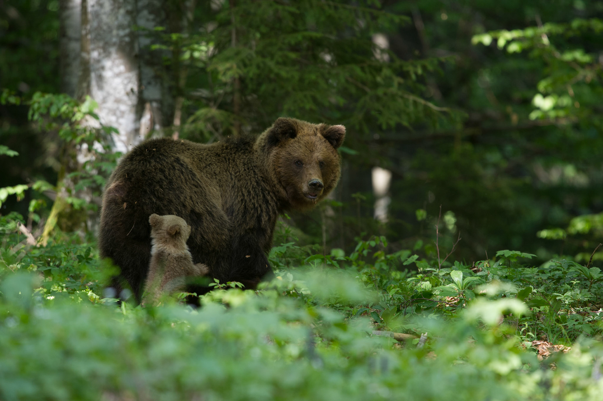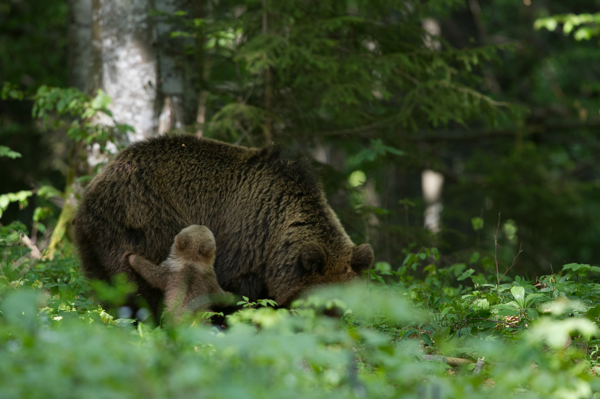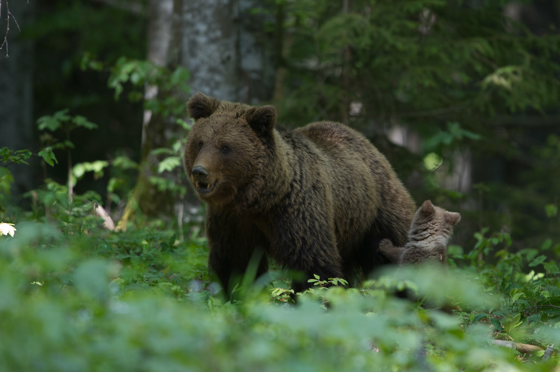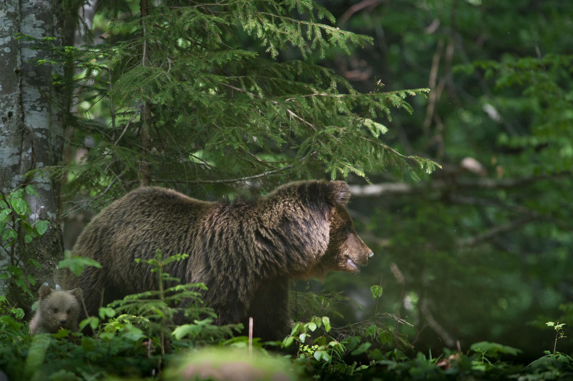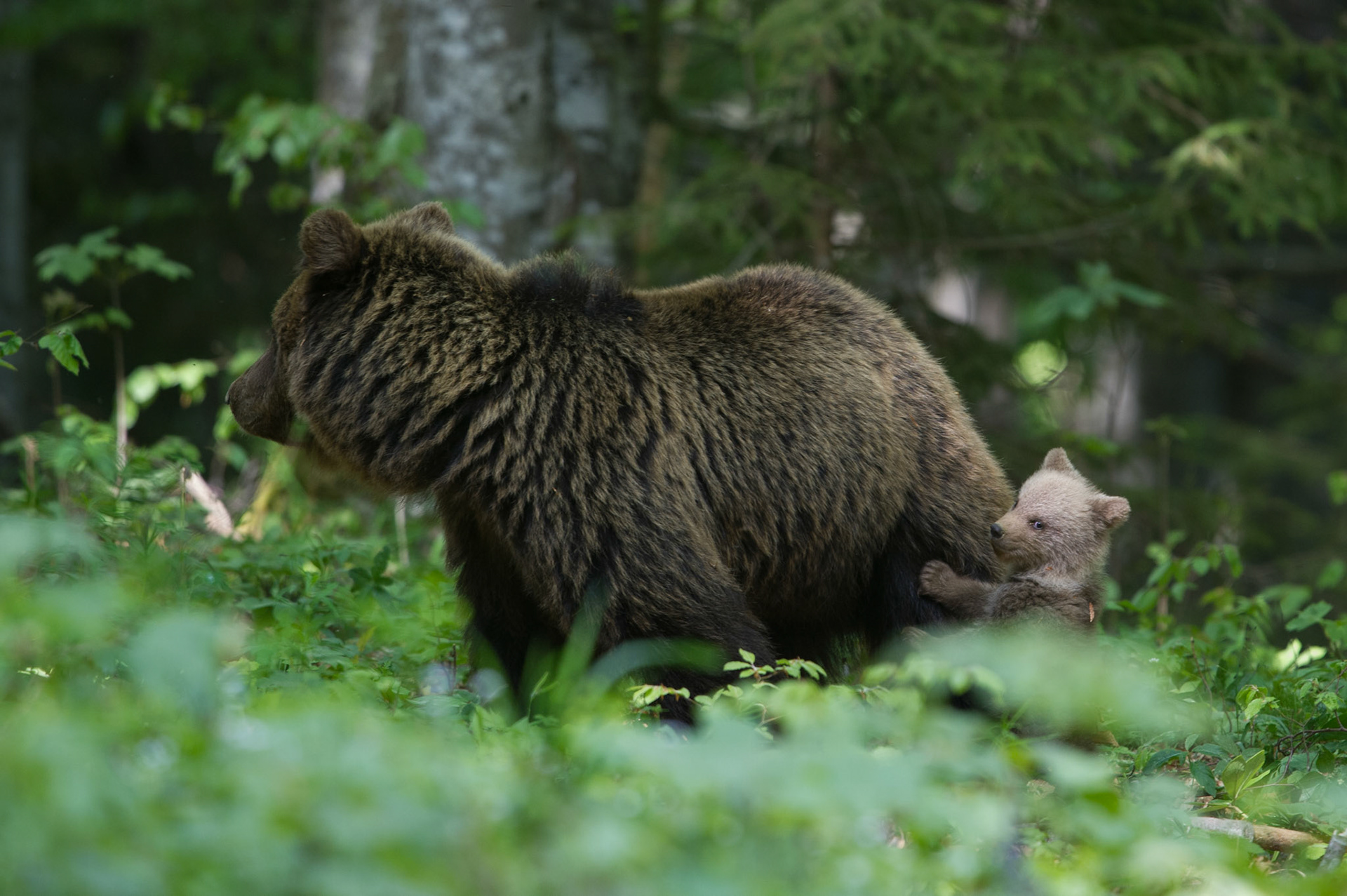 In the central south of Slovenia, not far from beautiful Postojna, there is the biggest chance to spot wild brown bears in their natural habitat. I had the great fortune to photograph a newborn little brown bear under the protection of its mother.