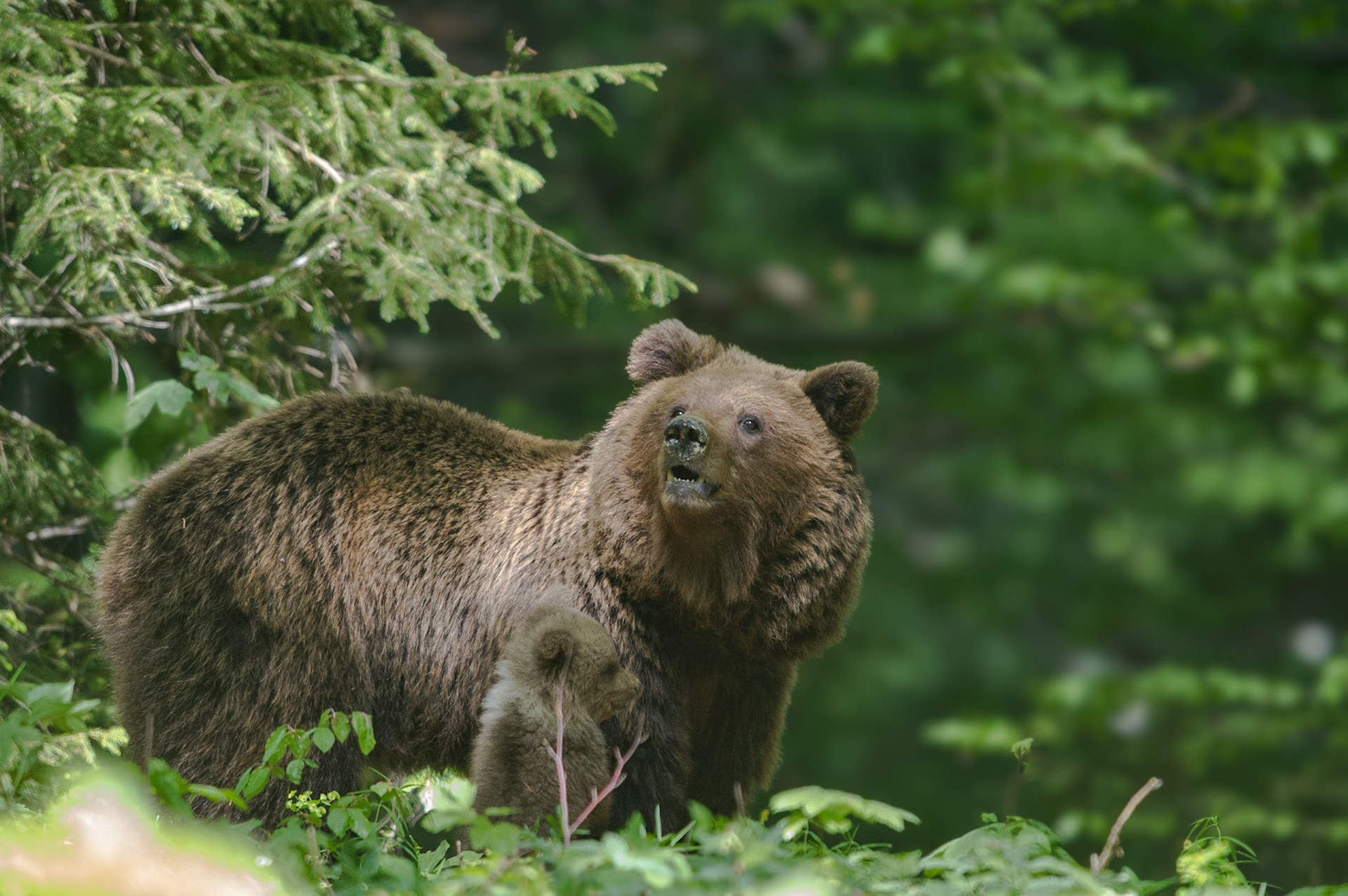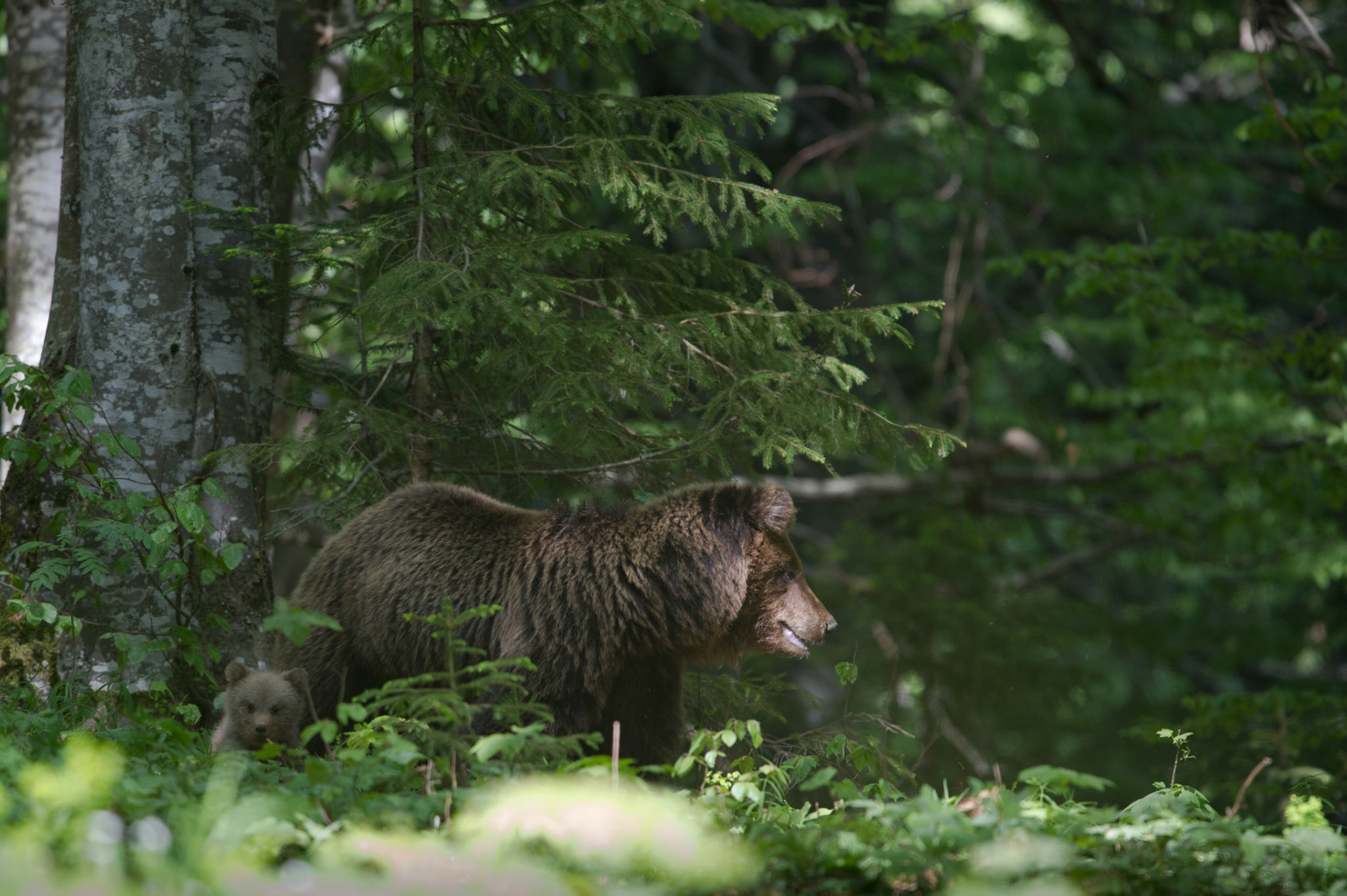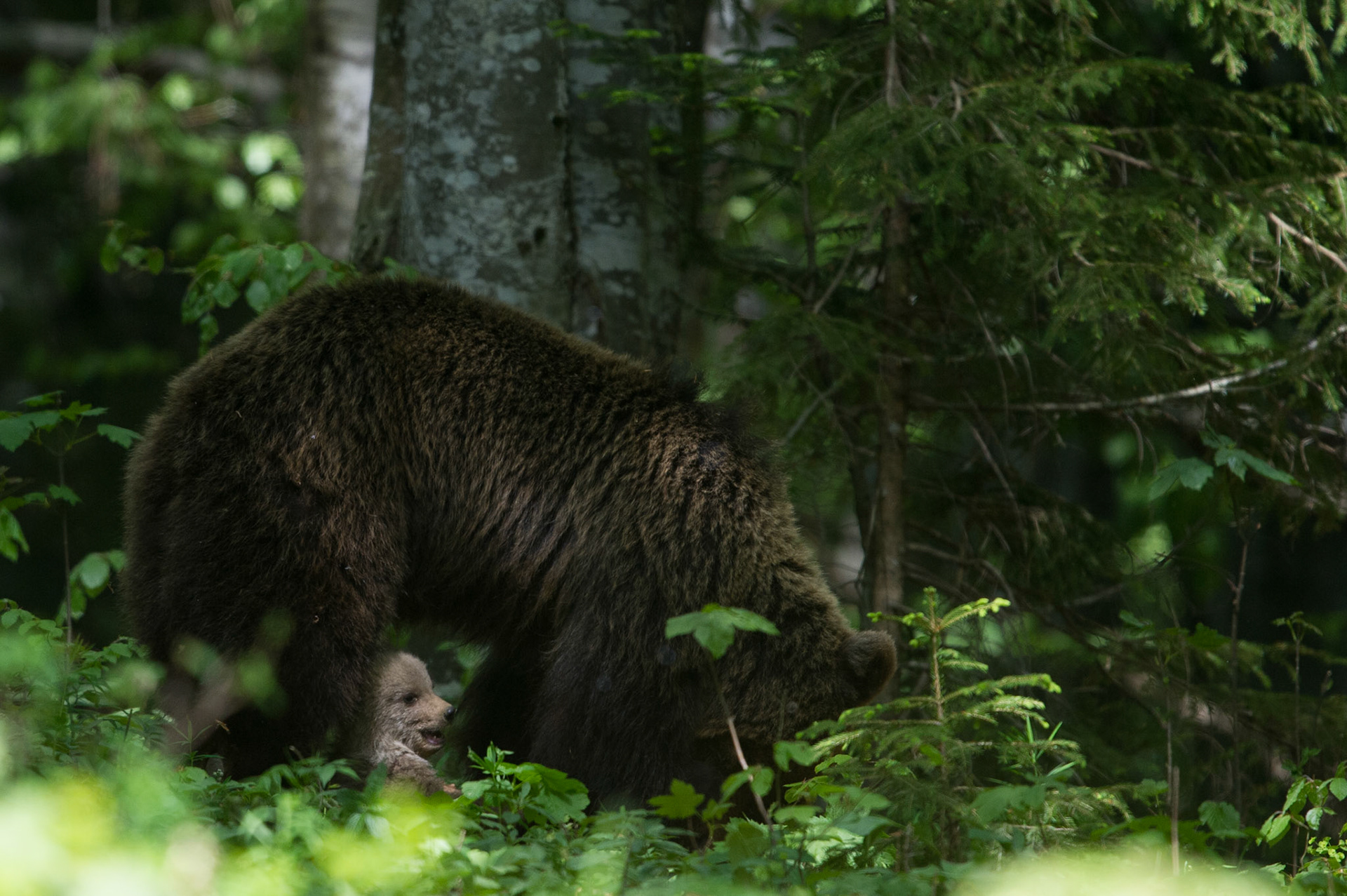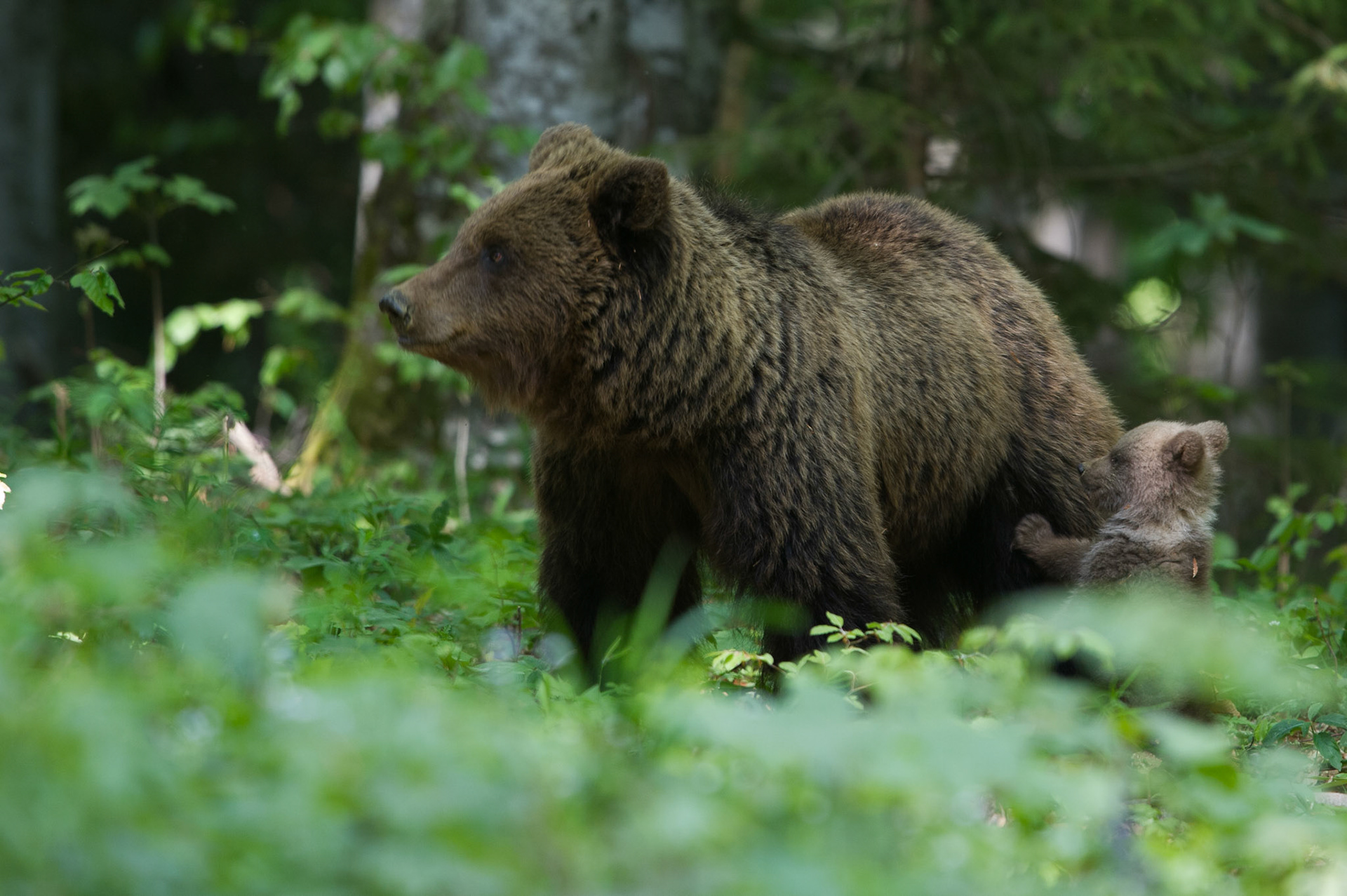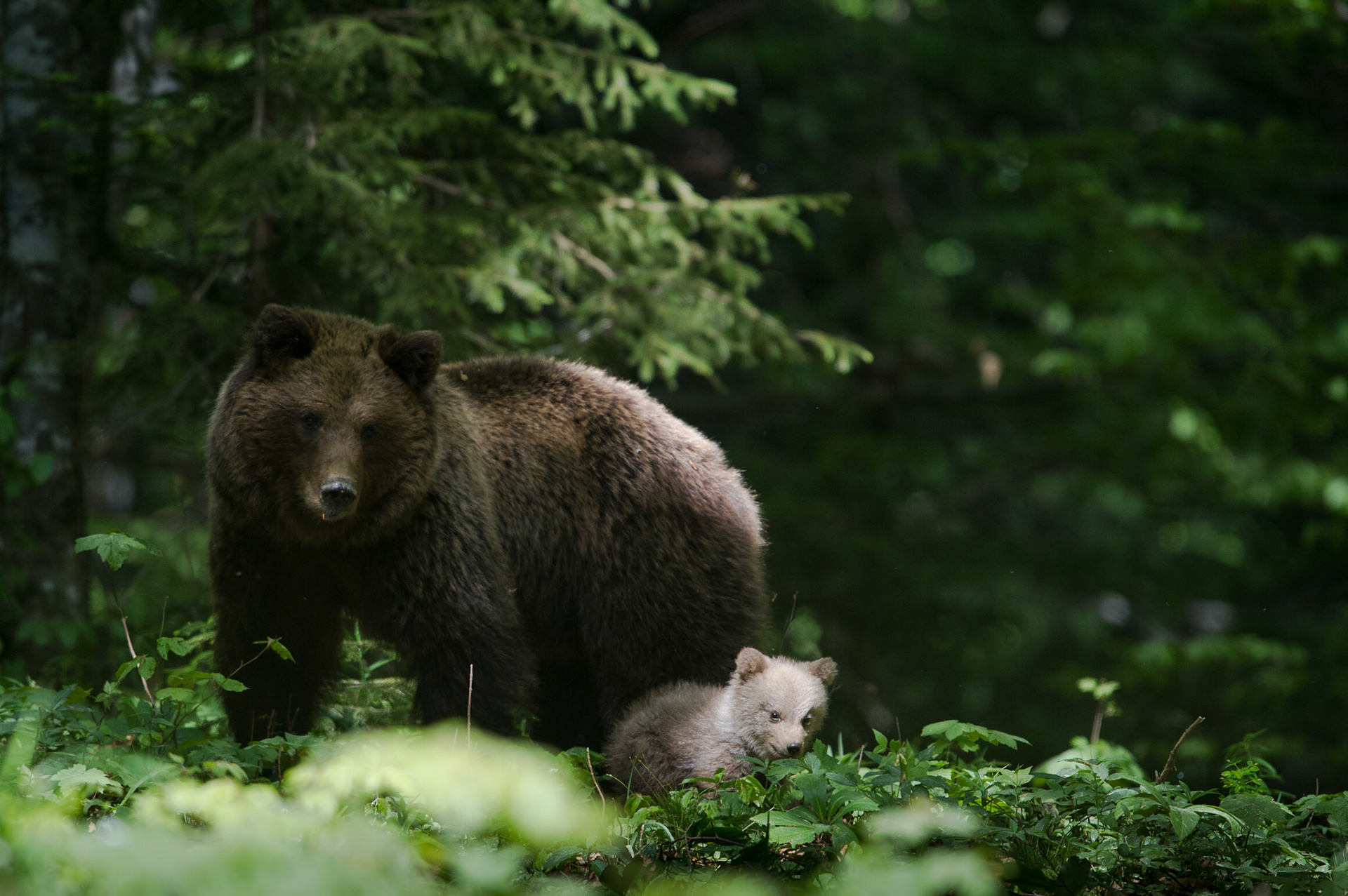 In the central south of Slovenia, not far from beautiful Postojna, there is the biggest chance to spot wild brown bears in their natural habitat. I had the great fortune to photograph a newborn little brown bear under the protection of its mother.